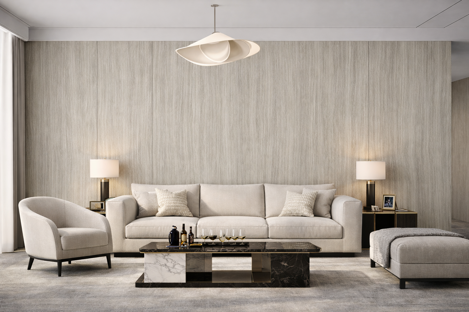 The range includes multiple surface series—Wood Grain, Leather, Metal, Mirror, Monochrome, Rock Pattern, and Cloth—allowing flexibility across different interior design requirements and material palettes.