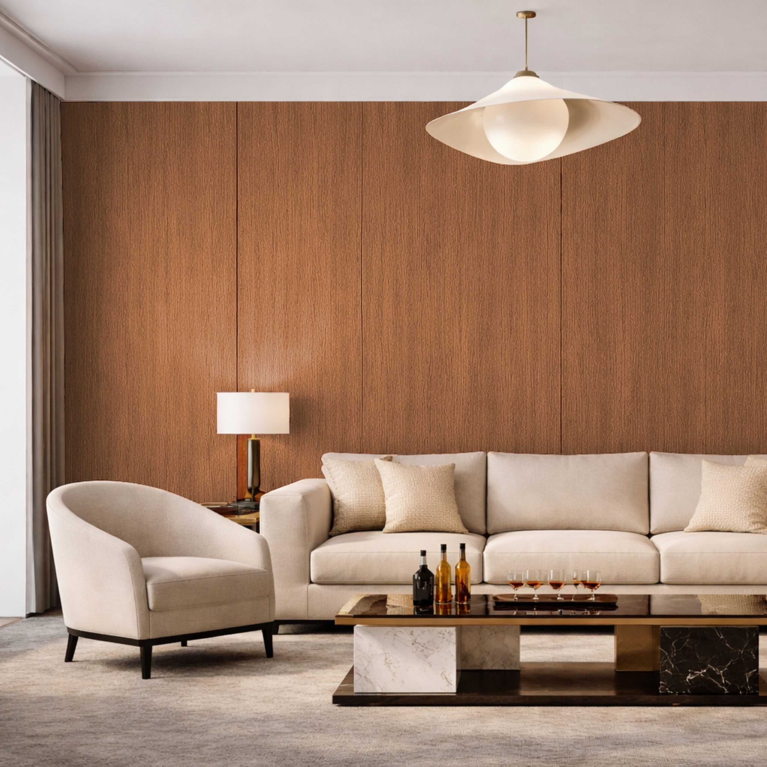 The range includes multiple surface series—Wood Grain, Leather, Metal, Mirror, Monochrome, Rock Pattern, and Cloth—allowing flexibility across different interior design requirements and material palettes.