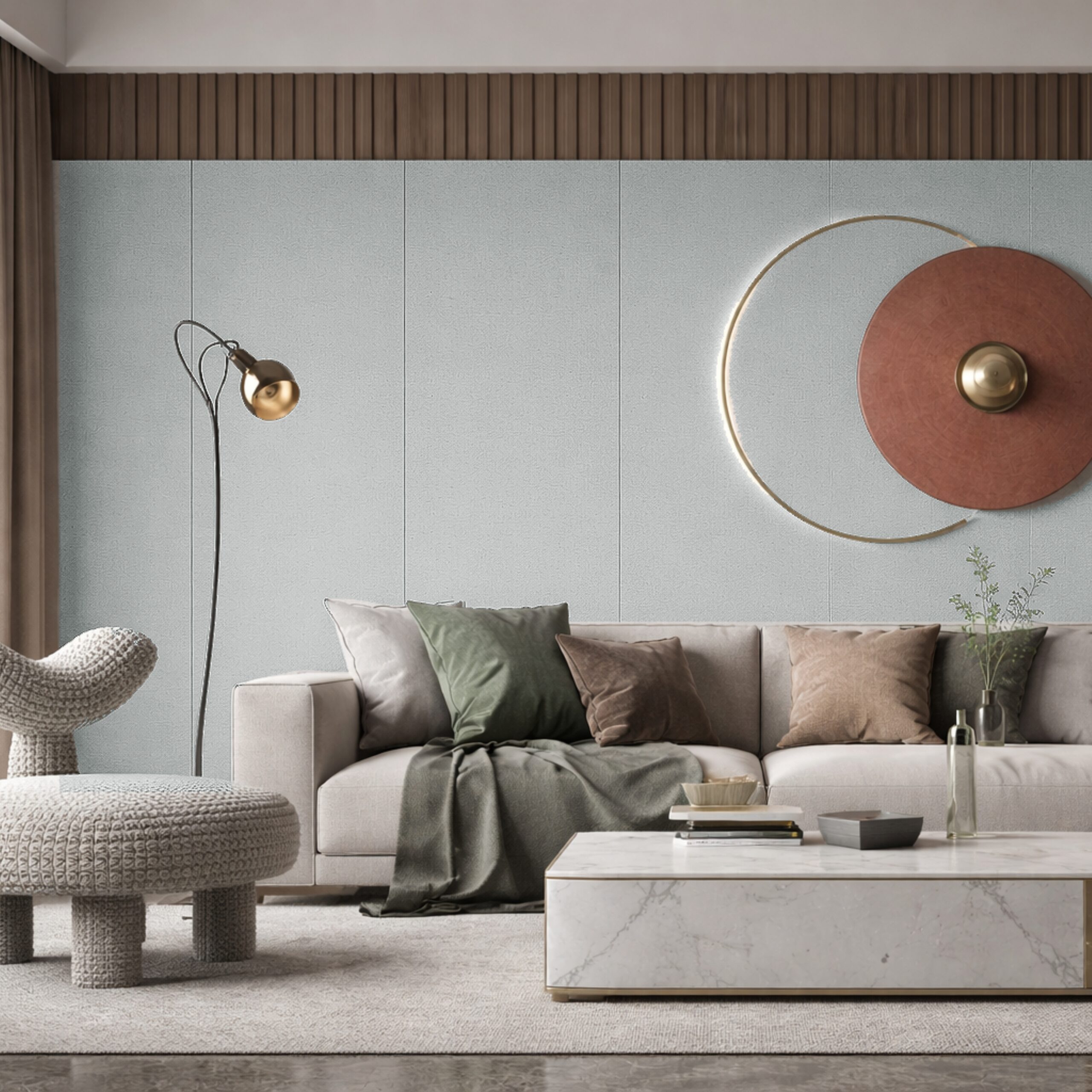 The range includes multiple surface series—Wood Grain, Leather, Metal, Mirror, Monochrome, Rock Pattern, and Cloth—allowing flexibility across different interior design requirements and material palettes.