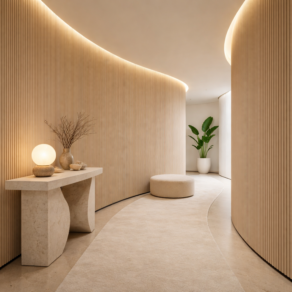 Create seamless curves and fluid architectural forms with MuroVero Flexible Wood Panels, crafted for high-end interior design applications. Engineered from adaptive bendable wood composite materials, these panels make it possible to achieve curved walls, rounded columns, organic forms, and bespoke custom joinery.