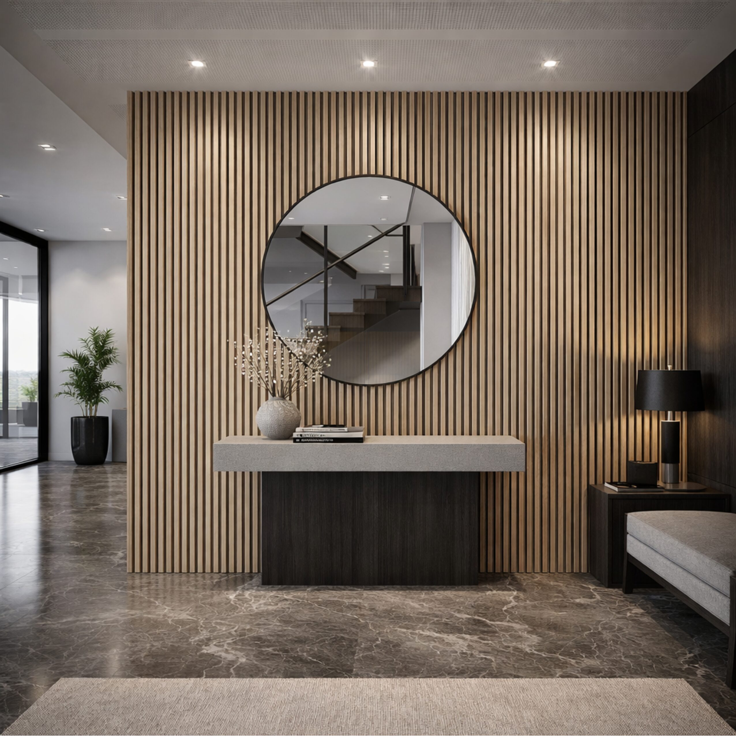 Ideal for feature walls, acoustic treatments, media rooms, offices, and boutique interiors, MuroVero MDF panels combine luxury form with functional performance. Available in contemporary timber-look veneers and modern matte finishes, they offer exceptional stability, clean lines, and elegant design adaptability.