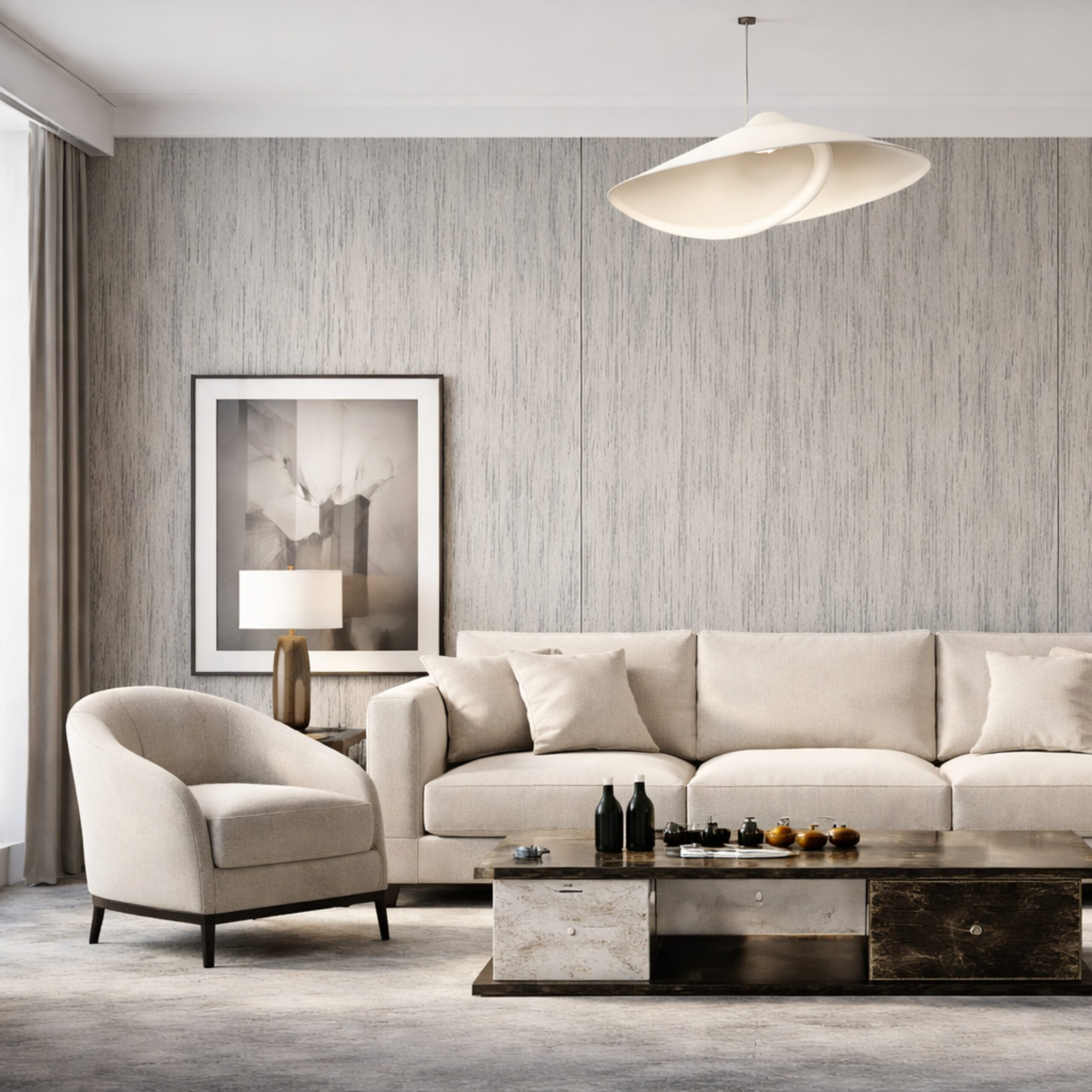 The range includes multiple surface series—Wood Grain, Leather, Metal, Mirror, Monochrome, Rock Pattern, and Cloth—allowing flexibility across different interior design requirements and material palettes.