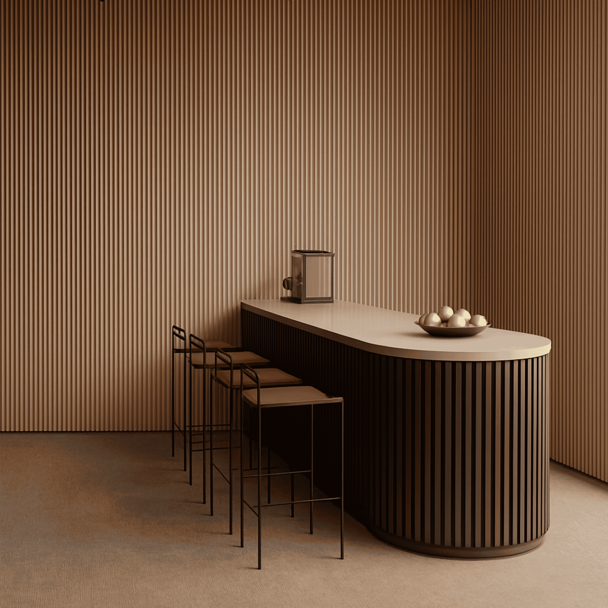 Create seamless curves and fluid architectural forms with MuroVero Flexible Wood Panels, crafted for high-end interior design applications. Engineered from adaptive bendable wood composite materials, these panels make it possible to achieve curved walls, rounded columns, organic forms, and bespoke custom joinery.